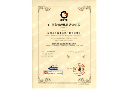 IT服務(wù)管理體系認(rèn)證證書(英文)